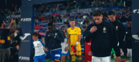 主裁判鸣响开场哨,双方球员静立抗议海外赛事安排