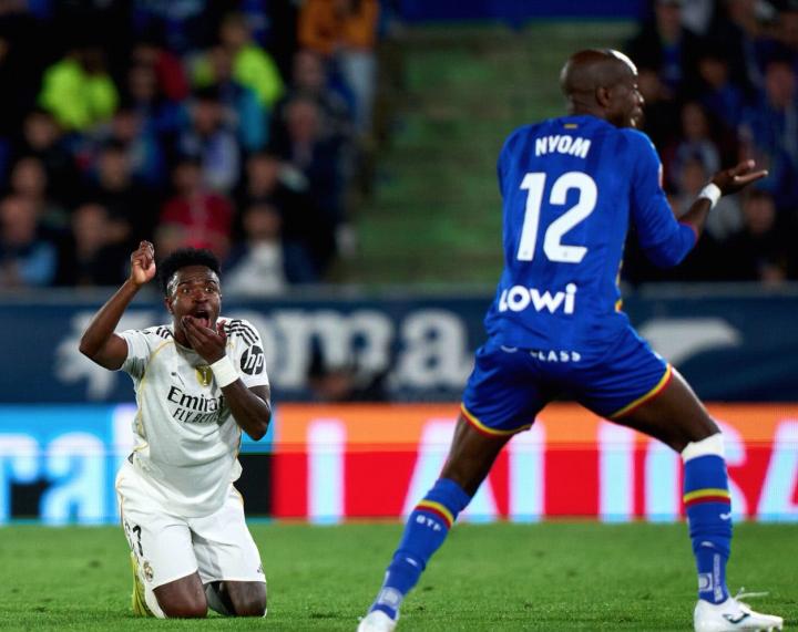 西甲联赛第9轮赛事中,皇家马德里客场以1-0的比分艰难战胜赫塔费,维尼修斯作为替补球员登场后,成功导致对方两名球员被罚下场。